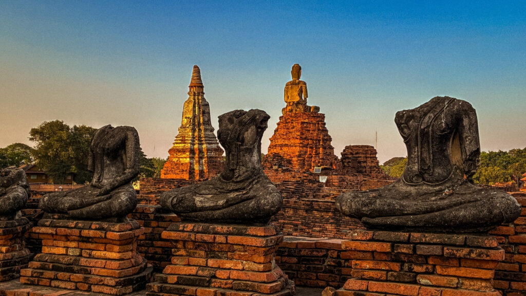 Fast forward a year, and we planned an April trip timed to meet friends for Songkran (Thai New Year). Based on everything we’d read, she needed to go to the province where she was born, roughly three hours north of Bangkok. That meant passing right by Ayutthaya, the ancient capital of the Kingdom of Siam, founded in 1350 and capital for over 400 years. Neither of us had been, and we were eager to finally see it.