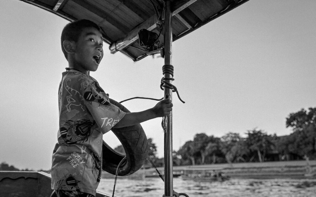 We quickly became friends with Tony, who ran the retreat, and he arranged a private boat tour of the old capital ruins. Our driver showed up in a bright pink songthaew, a far cry from the ones you’d typically see in Bangkok.