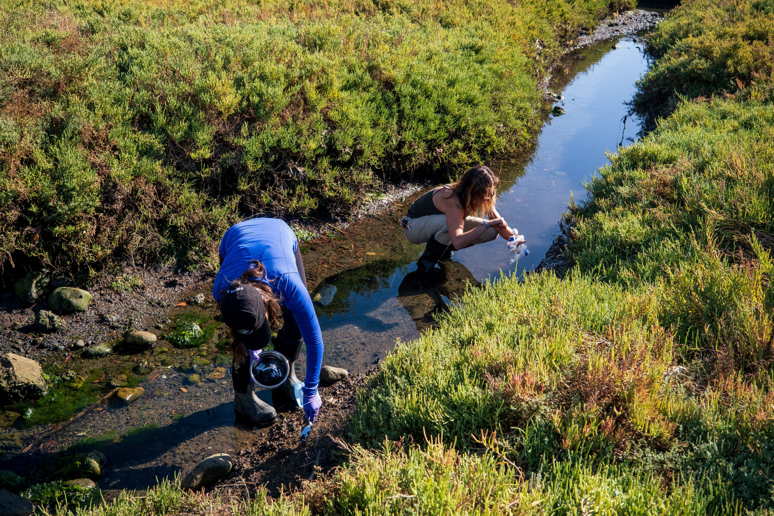 My intention was to convey just how much the estuary is to the people in the community by showing all the activities people use the estuary for: hiking, biking, running, horseback riding, birding, photographing. And I wanted to showcase the stewards that research and take care of this land.